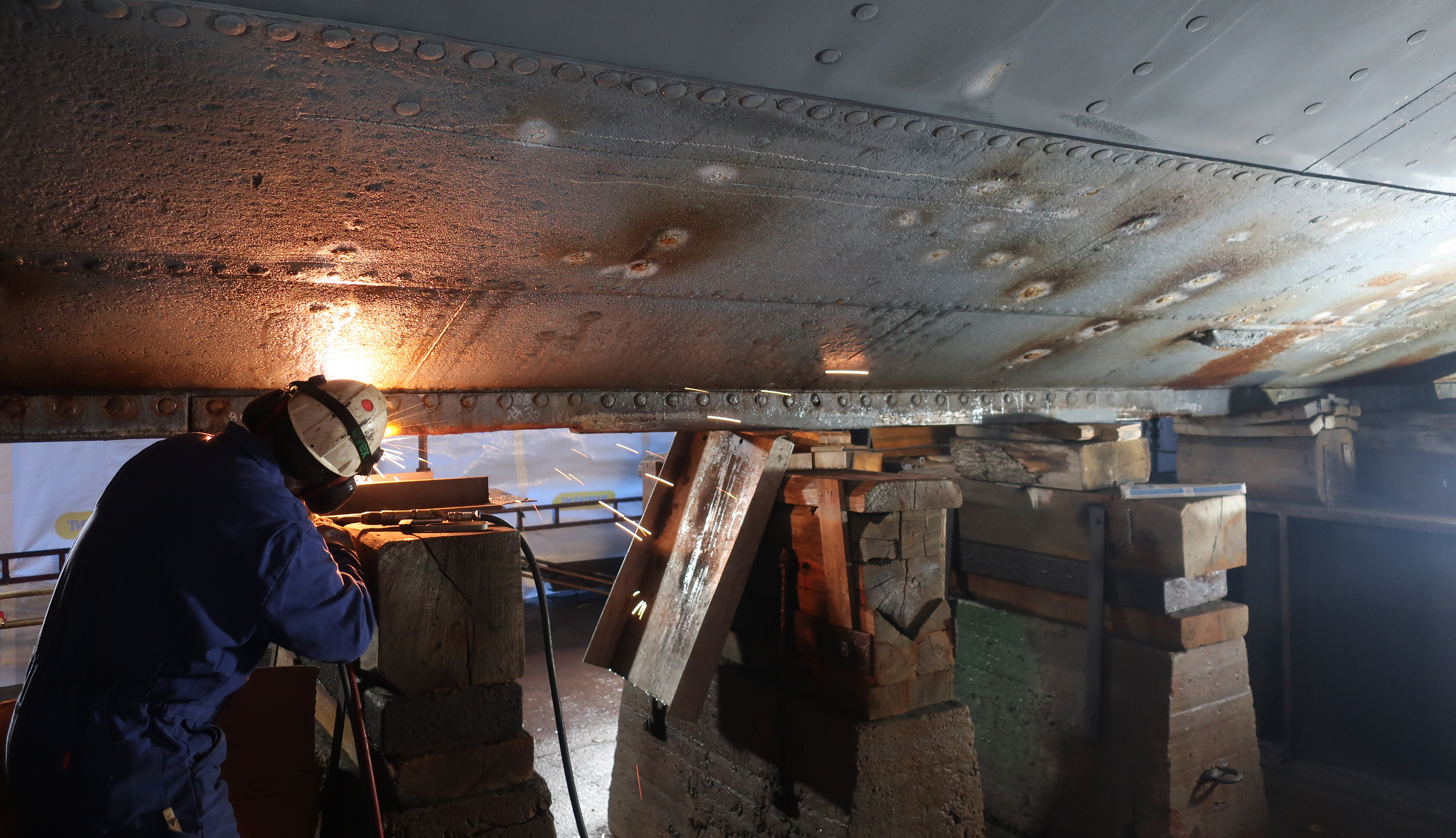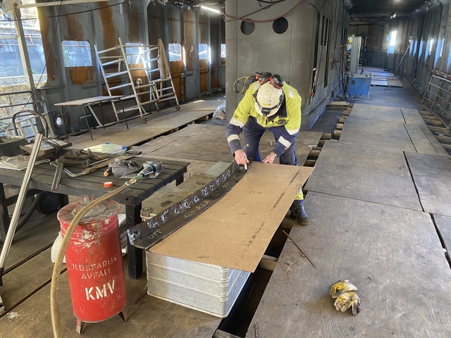 Etter en lengre pause er stålarbeid på Folgefonn nå startet opp igjen. Vi fortsetter med utskiftninger av hudplater og spant i forskipet.